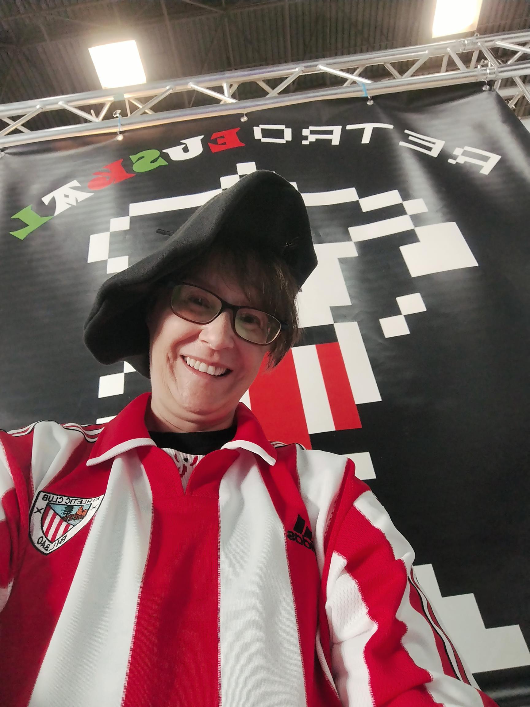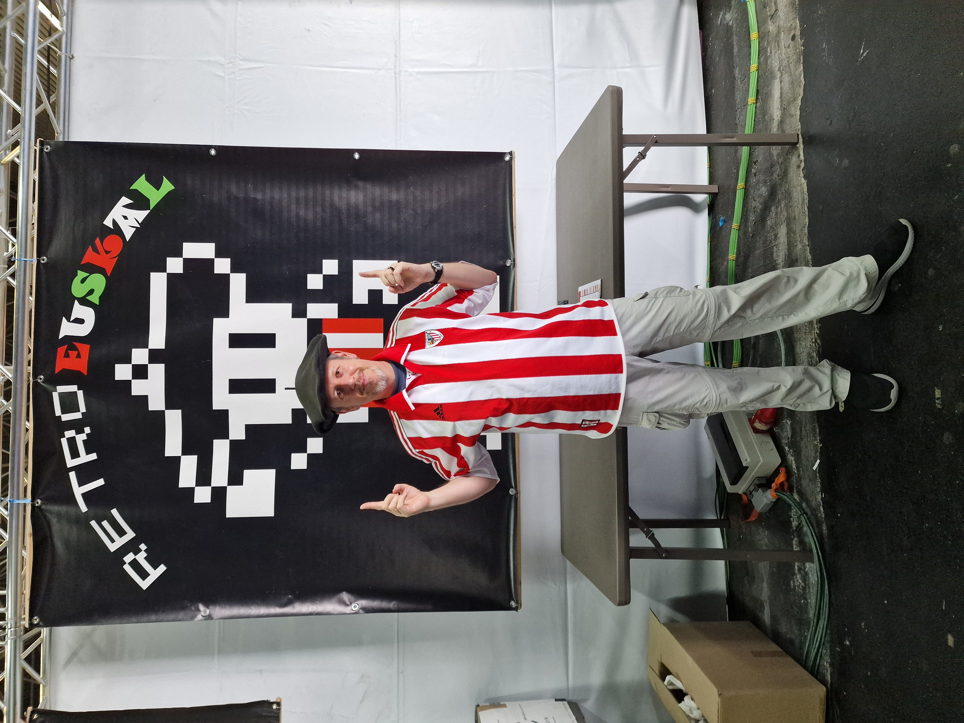 ) mascota de RetroEuskal, el Patxibot. Y aunque cada año volvemos a repetirlo, el público sigue respondiendo enviándonos sus fotos posando con el txapelón y la camiseta rojiblanca que se tenían disponibles para imitar a nuestro querido Patxibot.