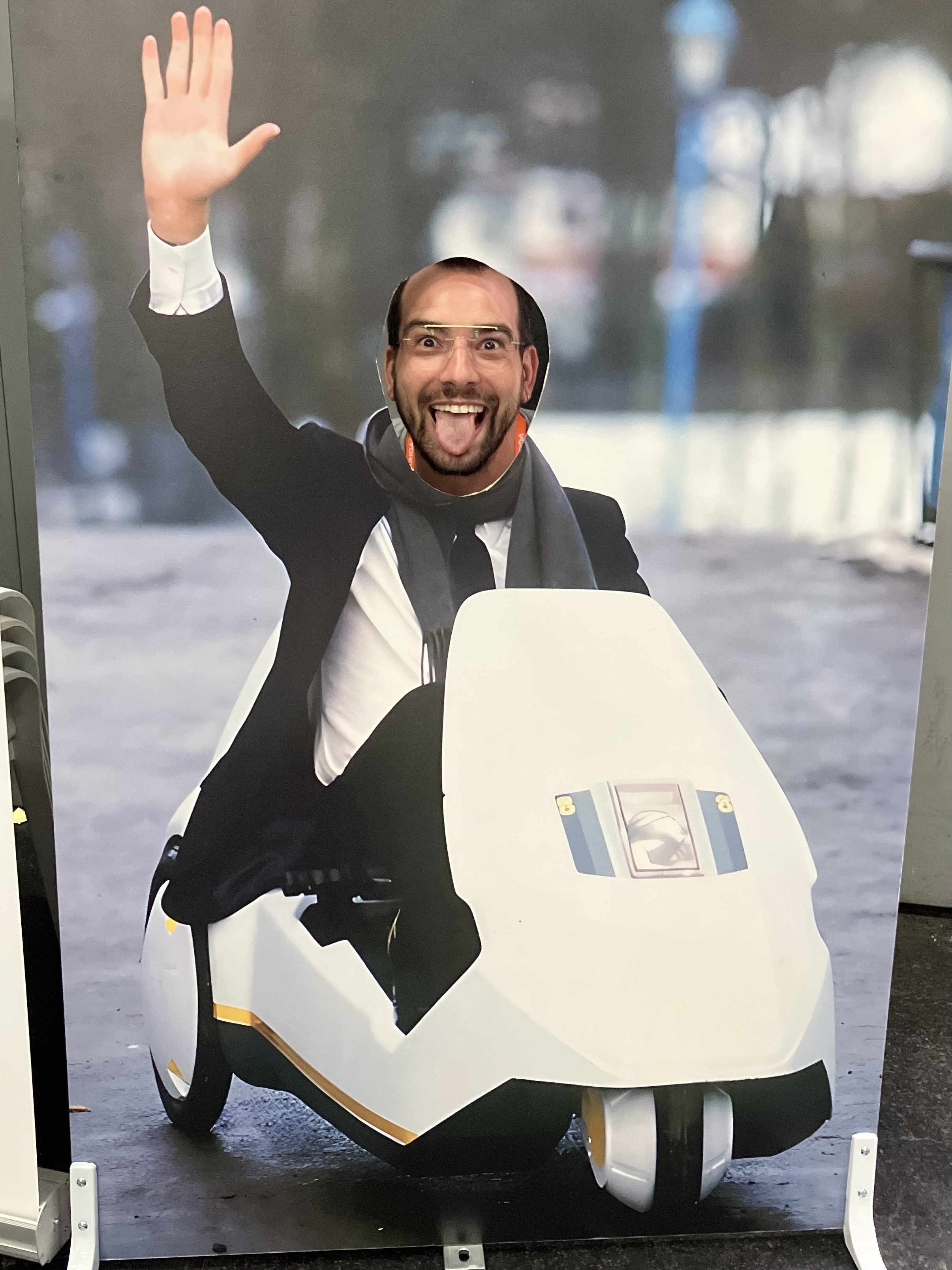 Después de pasear el véhiculo eléctrico Sinclair C5 por RetroMañía, hicimos el viaje con él hasta esta edición de RetroEuskal. El Sinclair C5 fue un producto que fue creado hace 40 años pero que no obtuvo el éxito deseado. ¡Quién sabe qué hubiera pasado si se hubiera creado en la actualidad! Para ello, se instaló este photocall para que la gente pudiera por la cara revivir el momento como si el Sinclair C5 existiera aún hoy.
