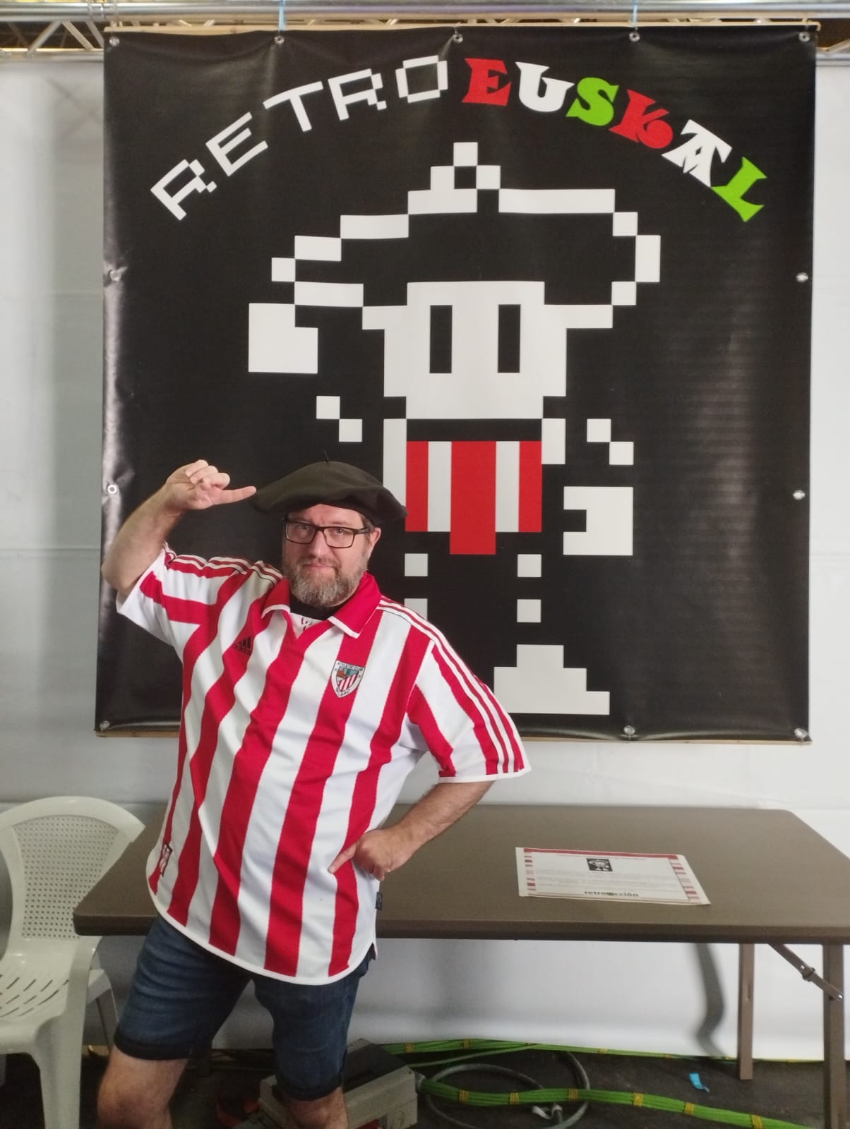 ) mascota de RetroEuskal, el Patxibot. Y aunque cada año volvemos a repetirlo, el público sigue respondiendo enviándonos sus fotos posando con el txapelón y la camiseta rojiblanca que se tenían disponibles para imitar a nuestro querido Patxibot.