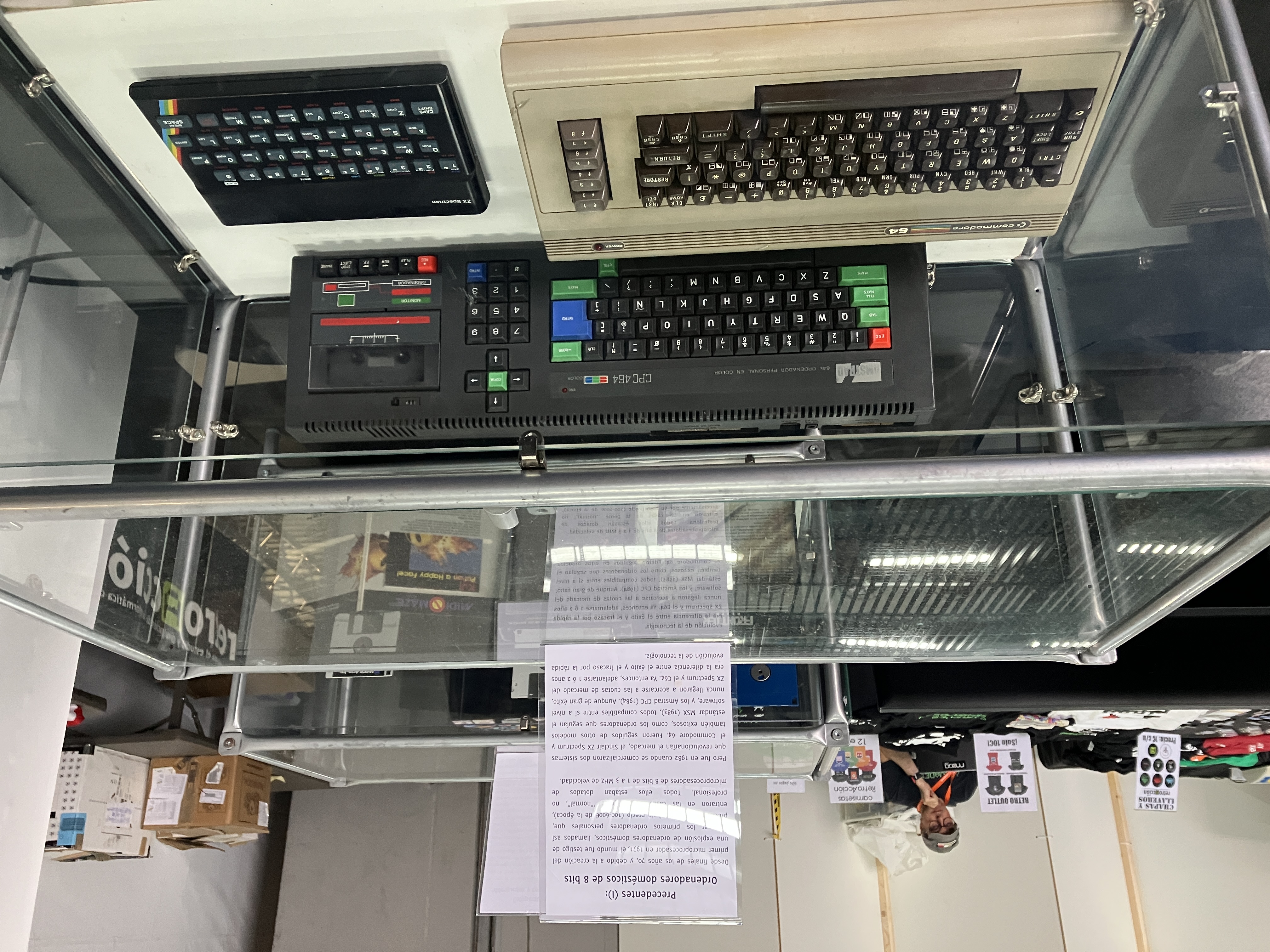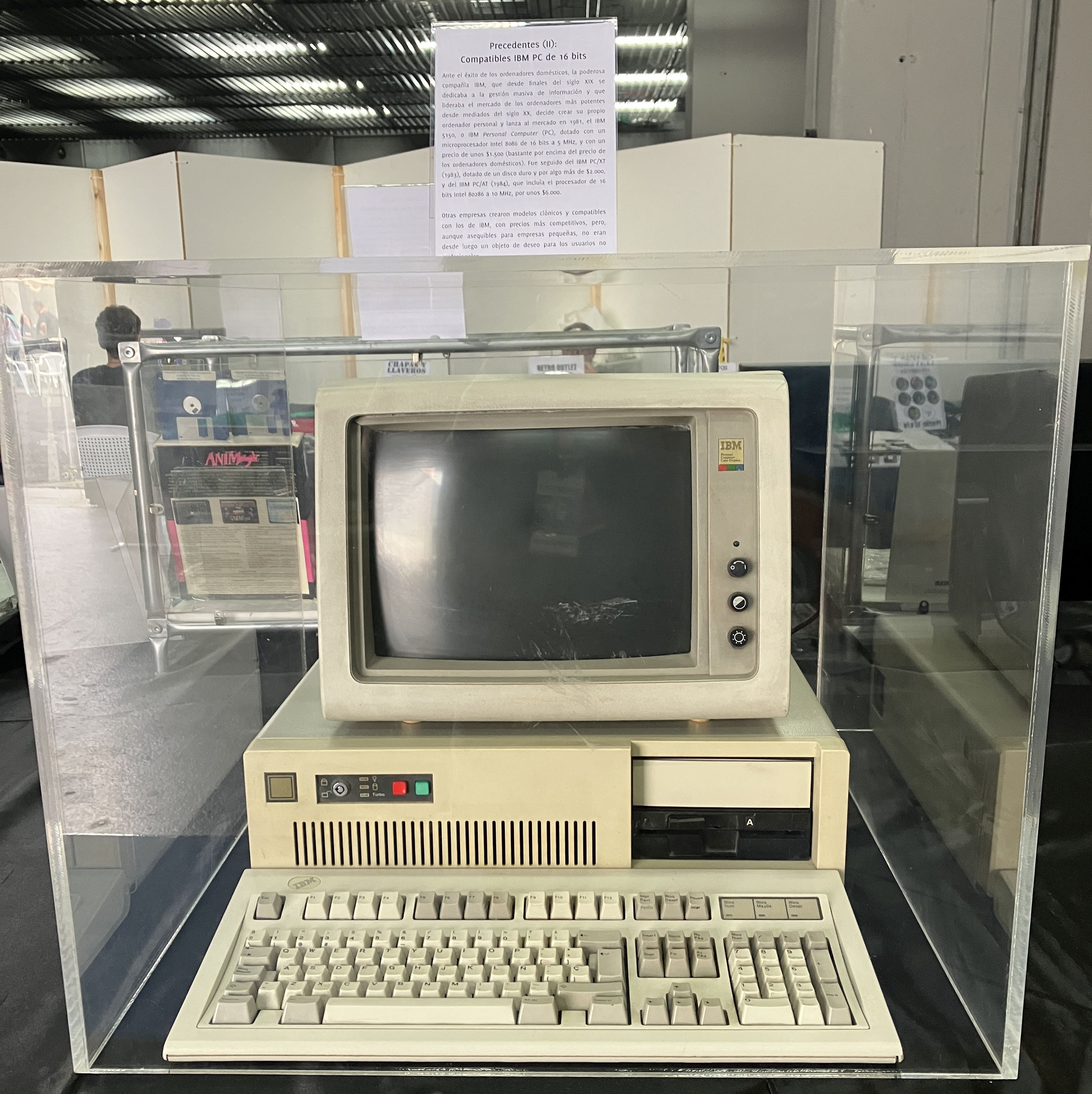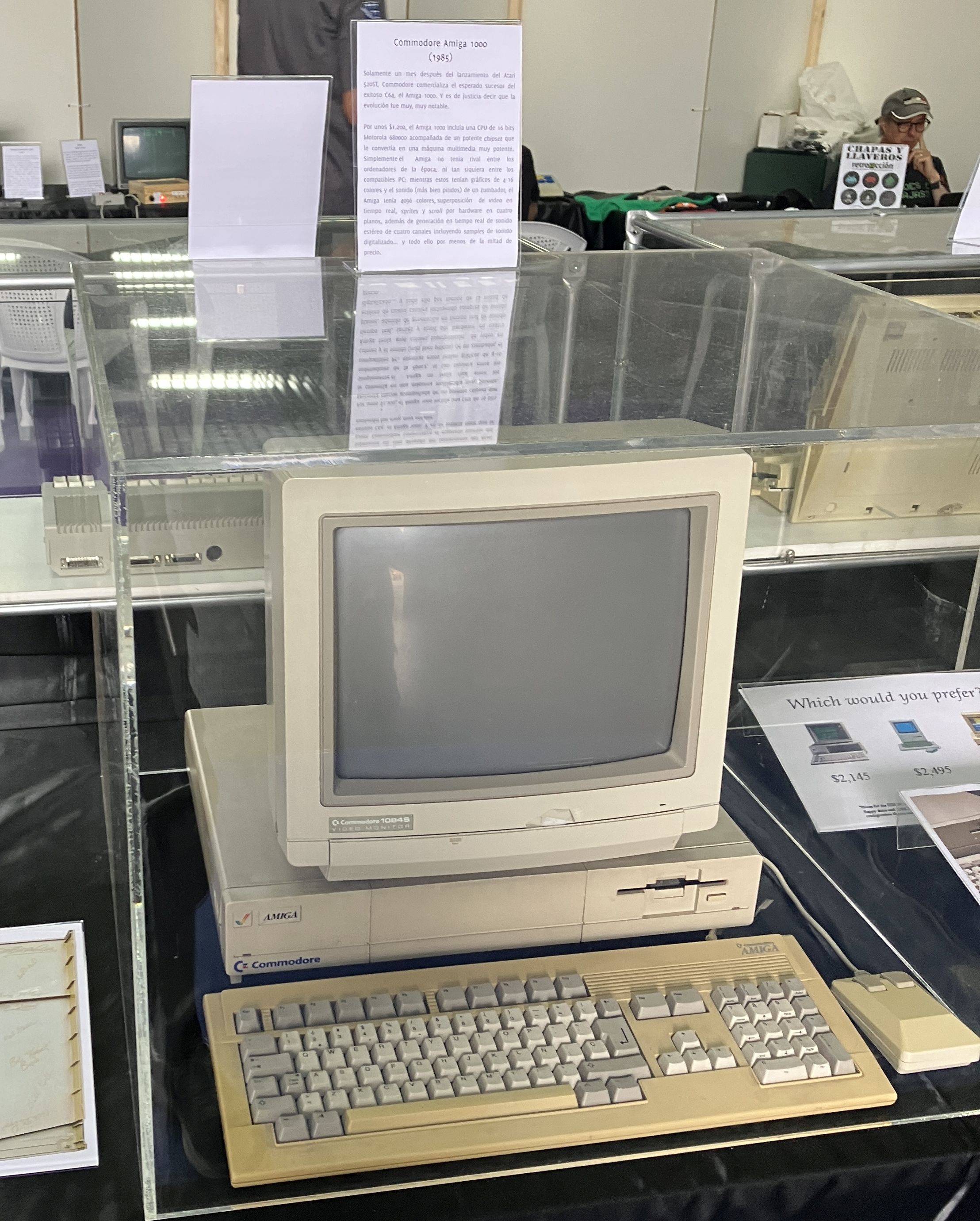 La exposición está dividida en tres partes. La primera de ellas incluye los ordenadores personales más señalables justo antes de que salieran al mercado en 1985 los dos equipos objeto de la exposición. Por una parte, los ordenadores domésticos más exitosos eran el Sinclair ZX Spectrum (1982), Commdore 64 (1982), y Amstrad CPC (1984), y en menor medida los equipos MSX (1983), no presentes en la exposición por falta de espacio. Otra línea importante de ordenadores personales de entonces, y que estaría llamada a ser el estándar en menos de una década, comienza con el IBM PC (1981) y tenía en esa época su máximo exponente en el IBM PC/AT (1984), potente y muy caro pero aún sin capacidades multimedia aceptables. La tercera línea de ordenadores personales venía marcada por los entonces recientes Apple Macintosh (1984), cuyo último modelo en ese mismo año fue el Macintosh 512K.