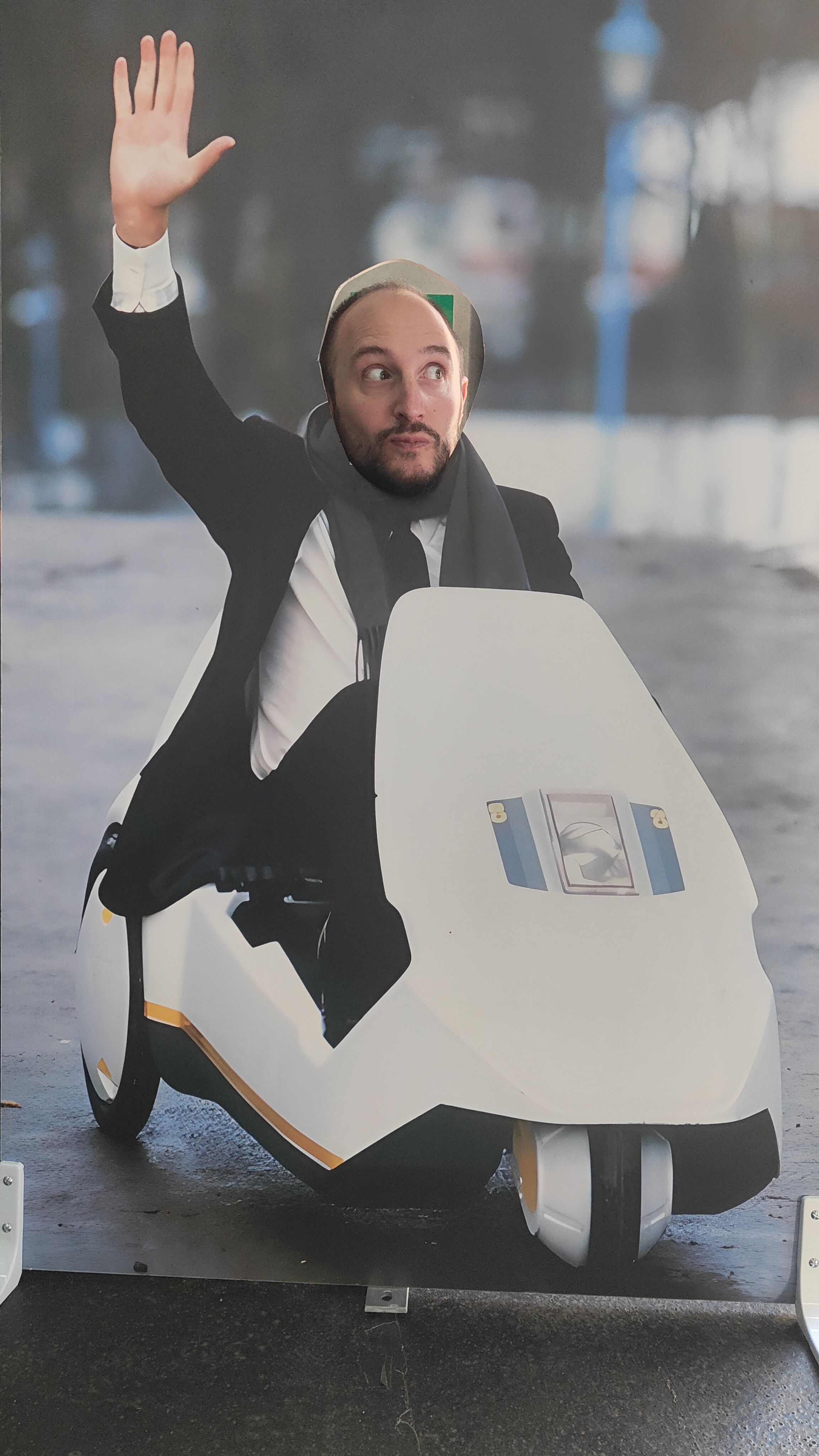 Después de pasear el véhiculo eléctrico Sinclair C5 por RetroMañía, hicimos el viaje con él hasta esta edición de RetroEuskal. El Sinclair C5 fue un producto que fue creado hace 40 años pero que no obtuvo el éxito deseado. ¡Quién sabe qué hubiera pasado si se hubiera creado en la actualidad! Para ello, se instaló este photocall para que la gente pudiera por la cara revivir el momento como si el Sinclair C5 existiera aún hoy.